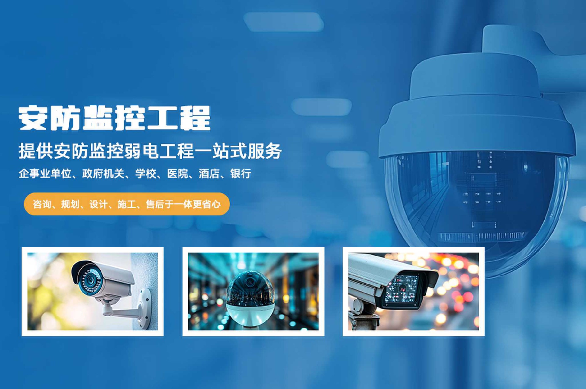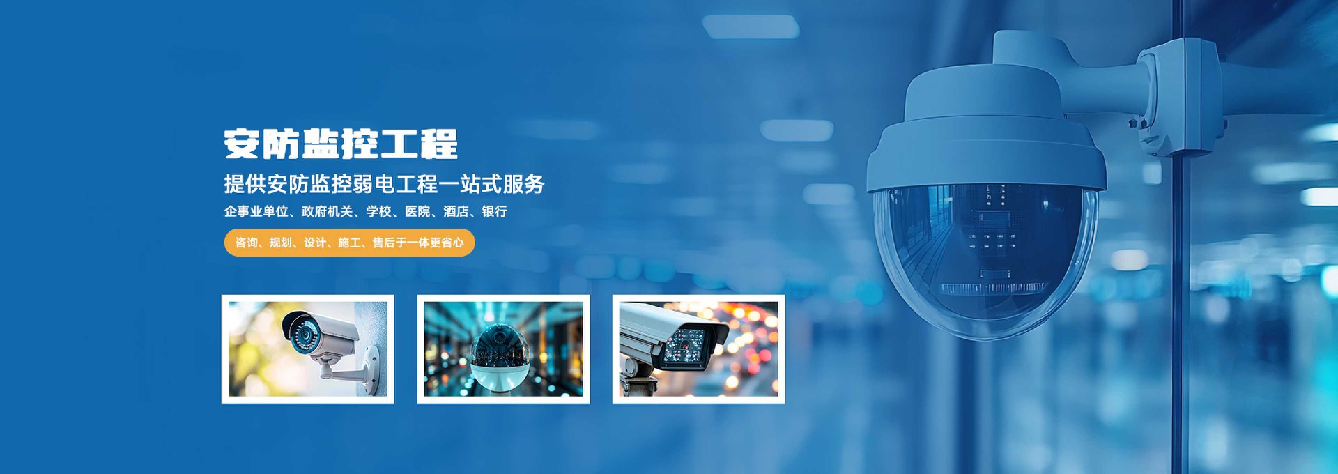安防監(jiān)控智能化服務(wù)商,專(zhuān)注安防監(jiān)控整體解決方案,視頻監(jiān)控系統(tǒng)、門(mén)禁系統(tǒng)、車(chē)輛道閘系統(tǒng)、紅外報(bào)警系統(tǒng)等